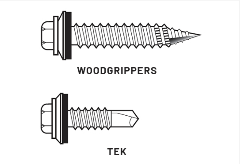 We offer a full line of stocked fasteners suitable for a variety of applications, including Woodgrippers and TEK (stainless steel available upon request). All fasteners come complete with a neoprene washer and are colour matched to your cladding.