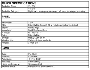 Are you looking for a thermally broken door? Our thermally broken door boasts a polyurethane insulating core providing an R-13 value, while reducing your energy bills. Its 24 gauge Bright White panel system provides a clean, striking, durable finish to any interior or exterior view, while maximizing functionality.